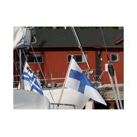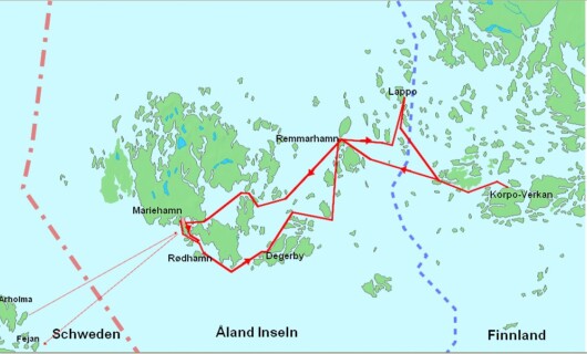 Ich bin nun über Ingmarsö-Sörviken und Arholma seit 2 Tagen hier in Mariehamn, die Hauptstadt der Aaland Inseln. Diese gehören zu Finnland, haben aber eine gewisse Selbstständigkeit, ein eigenes Parlament, eine eigene Nationalflagge. Vorherrschend ist die schwedische Sprache, viele Namen sind zweisprachig. Das alles resultiert aus der Zwangsvereinleibung nach Finnland, die Bewohner wären lieber Schweden geworden. So kommt es, daß hier ein finnischer Segler eine Gastlandflagge braucht, und ein hier beheimateter im "eigentlichen" Finnland auch eine finnische braucht, obwohl er doch politisch Finne ist. Aber selbst am finnischen Festland gibt es noch schwedische Namen. Kein Schwede spricht von Helsinki, für sie ist es Helsingfors.