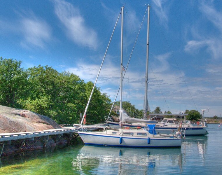 nun habe ich meine kleine Aaland-- und finnische Archipelago--Runde beendet und bin wieder in Mariehamn. Während dieser Runde konnte ich immerhin mehr segeln als motoren, das ist ja gar nicht so selbstverständlich. Das Wetter wechselte sehr häufig zwischen hässlich und schön, und so habe ich auch einige Hafentage einlegen müssen. Heute ist es regnerisch aber nicht kalt. Dabei bin ich gestern noch bei bestem Wetter vom hiesigen Osthafen in den Westhafen gesegelt, das waren 15 sm. Zu Fuß durch die Stadt sind es 10-15 Minuten. Beide Häfen sind sehr gut ausgestattet aber auch teuer. Hier im Westhafen funktioniert auch wieder das kostenlose WLAN, welches im Osthafen auf meinem Liegeplatz zu schwach war.