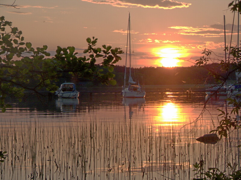 Nach Mariefred war ich in Strängnäs, weiter westlich im Mälaren. Dort gibt es einen sehr gut erhaltenen mittelalterlichen Stadtkern aus Holzhäusern und einen imposanten und schönen Dom. Von dort ging es dann nach Nordosten zu einem einsam gelegenen Campingplatz und dann weiter nördlich nach Sigtuna. Es war wieder so heiß, daß ich an beiden Tagen unterwegs eine Ankerbucht aufsuchte und mehr aus Neugier ein Thermometer ins Wasser ließ. Es hatte 20 Grad und schon war ich im Wasser zum Abkühlen. Nur 2 Tage vorher in Mariefred waren es nur 14.