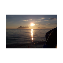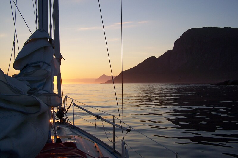 So war es für mich für einige Tage in Stött, 30 sm vor Bodö. Vormittags wenig Wind, dann stark auffrischend aus NE, also genau meine Richtung. Als ich dann einmal um 3 Uhr aufwachte und nach Draußen sah, schien schon die Sonne (Sonnenaufgang 2:30 GZ) und es war windstill. Der Entschluss war schnell getroffen. Um 3.30 war ich dann aus dem Hafen. Der Starkwind kam leider etwas früher, aber egal, zum Frühstück hatte ich dann meine Tagetour nach Bodö geschafft, wenn auch wieder unter Motor.