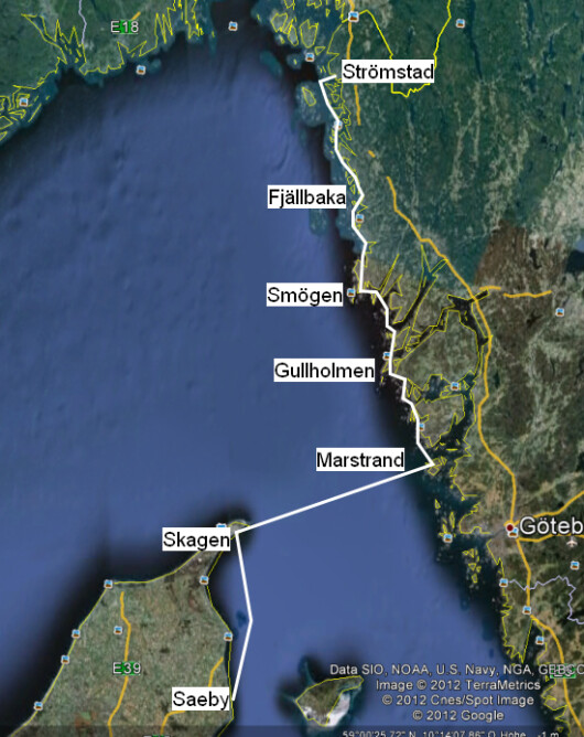 Nun war ich froh die relativ langen Tagestörns vermeiden zu können, denn innerhalb der Schären gibt es viele Häfen. So bin ich über Gullholmen, Smögen, Fjällbaka nach Strömstad gekommen und konnte endlich mal wieder alles segeln. Strömstad liegt zwar sehr nahe an der nördlich gelegenden norwegischen Grenze, aber ich möchte auf die andere Seite nach Westen.
