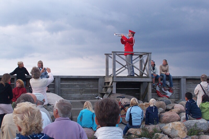 In Skagen habe ich mir bei wärmsten Sommerwetter 2 Hafentage gegönnt. Nach Saeby konnte ich danach auf einem am Wind Kurs sehr gut segeln. In Saeby gibt es in der Saison den schönen Brauch, daß zum Flaggenniederholen um 21 Uhr ein Trompeter auftritt. Viele Leute im Hafen versammeln sich dann dort. Nach Hals am Ostausgang des Limfjordes mußte ich bei Regen motoren. Hiermit war das beständig schöne Wetter erstmal vorbei. 2 Hafentage waren wegen Starkwind erzwungen.